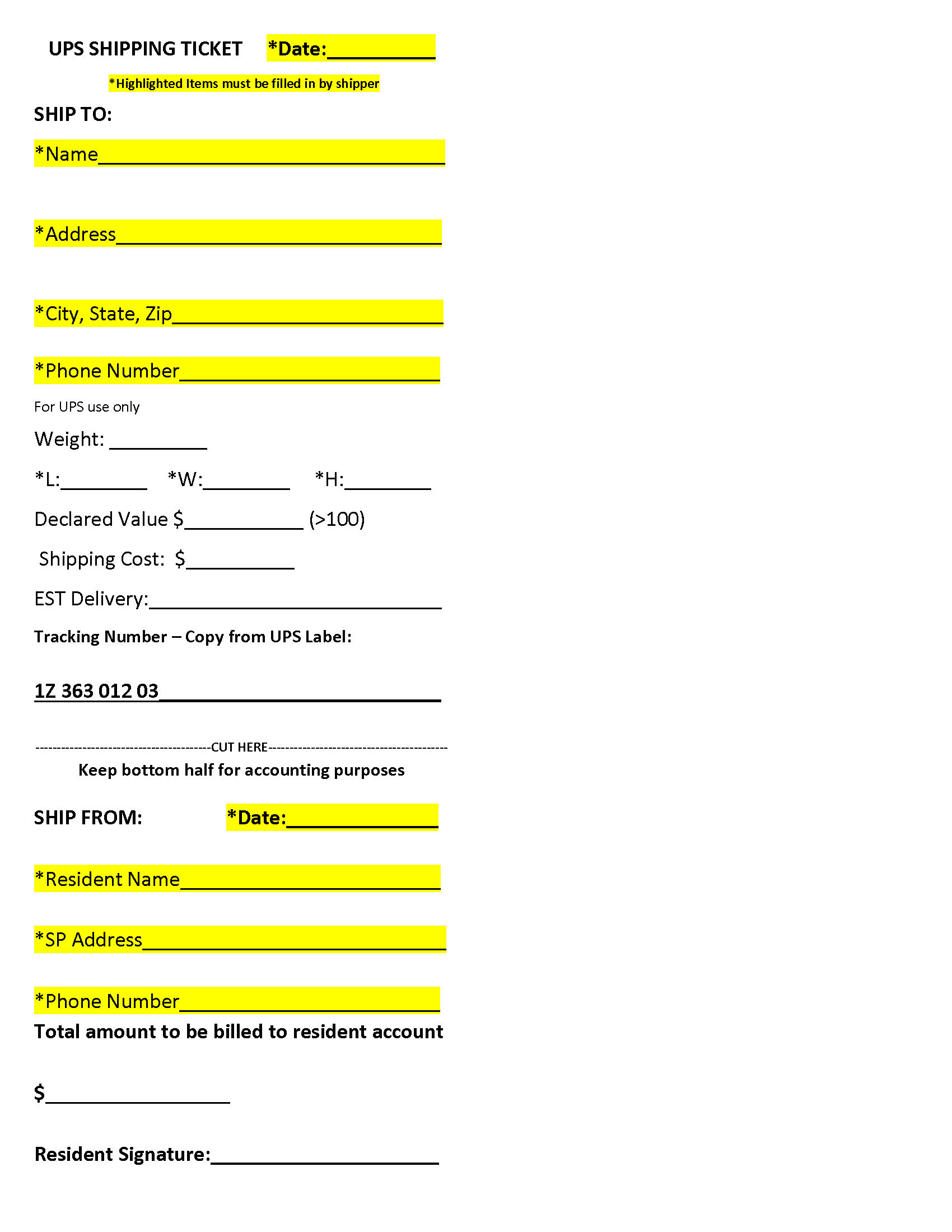 Please fill and print the shipping ticket below for any packages you wish to have shipped prior to visiting the Island UPS room.